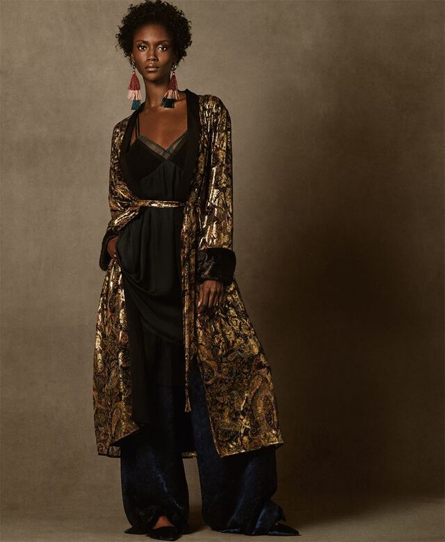 Depois de várias estações com uma aposta forte em tendências minimalistas, a Zara surpreende com uma nova coleção que recorda as origens da marca: mais padrões boémios, étnicos e orientais que se aproximam da tendência artesanal. As peças-chave são os quimonos bordados com detalhes em dourado, os casacos de pelo sintético em cores improváveis (como um verde amarelado) e os vestidos com padrões orientais em tons de laranja, amarelo e vermelho. Destacam-se os casacos de corte japonês, cintados, e com estampados florais. No fundo, a Zara faz uma viagem pelas culturas ancestrais, inspirada pela história criativa de marcas como Etro, Fendi, Isabel Marant ou Proenza Schouler.