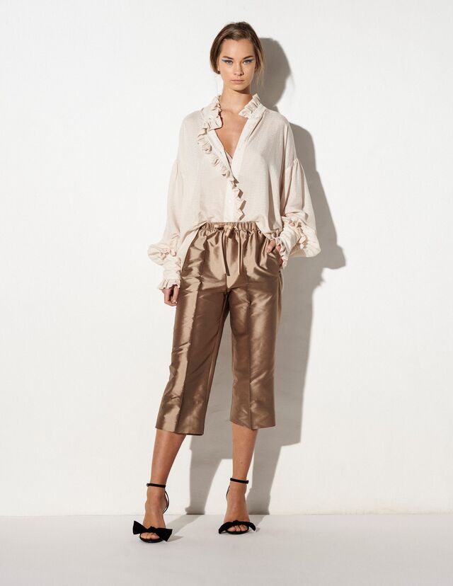 As silhuetas são fluidas e elegantes e a paleta de cores das peças passou por elementos que lembraram o Alentejo "branco como as casas, bege como a areia, azul klein e amarelo como as linhas das casas, azul céu como a água e o céu num dia de sol,(...), preto e dourado como a linha da sofisticação."